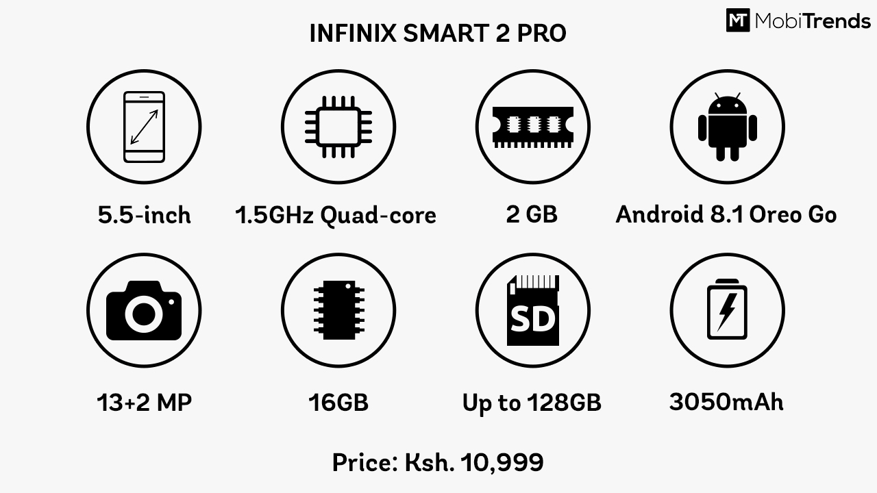 The Infinix SMART 2 Pro has a suggested retail price of Ksh. 10,999 in Kenya.